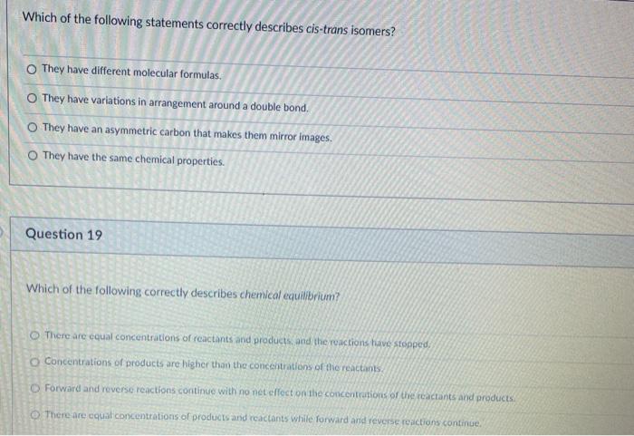 Which Of The Following Best Describes Cis Trans Isomers And Why Quora